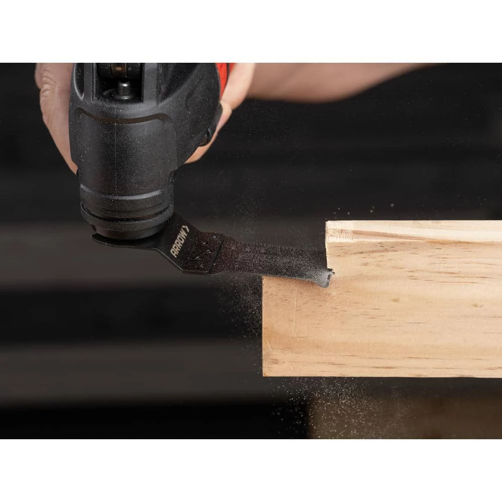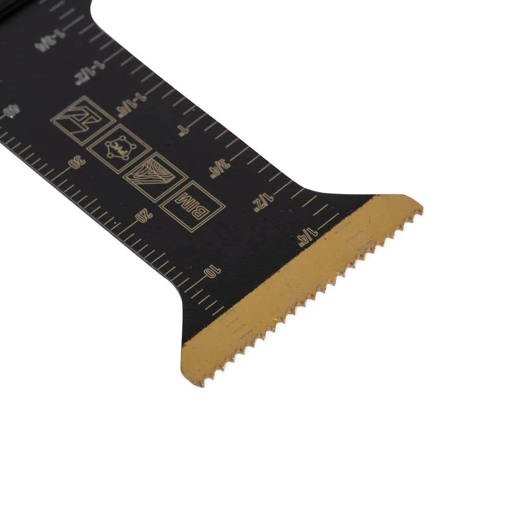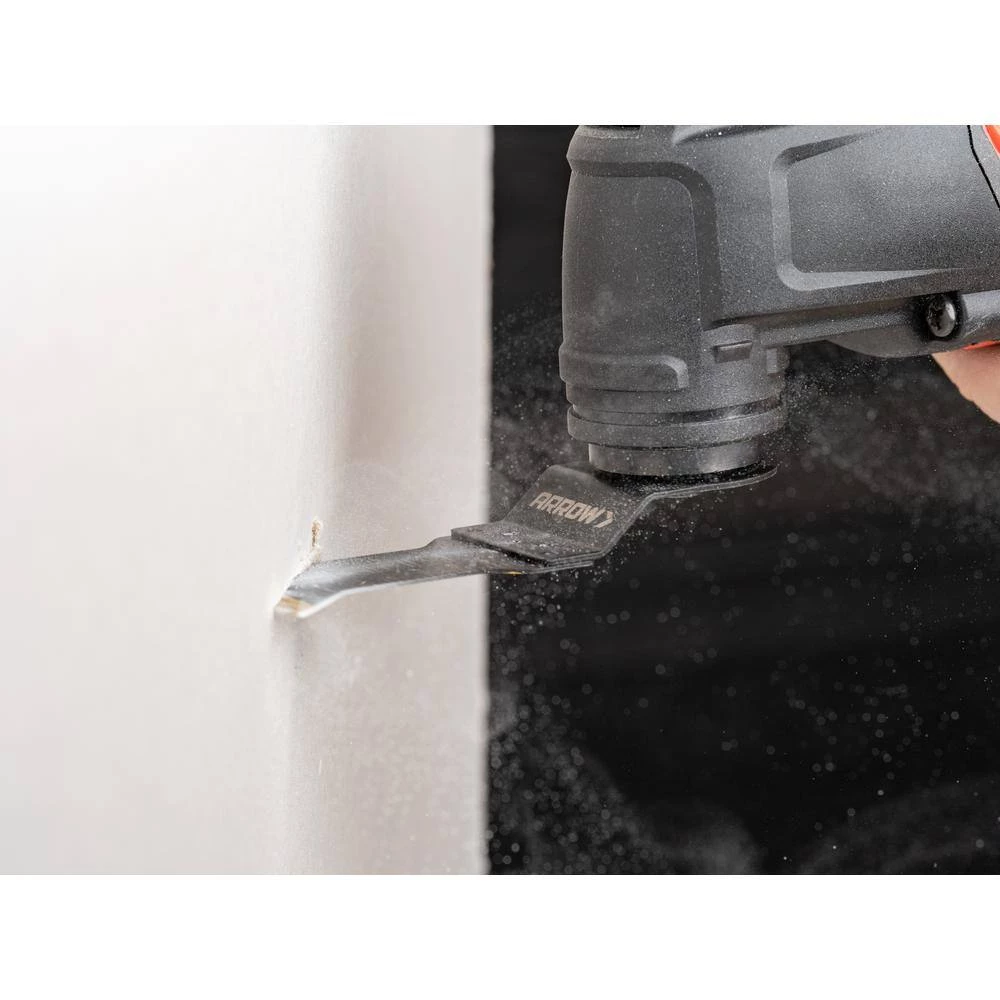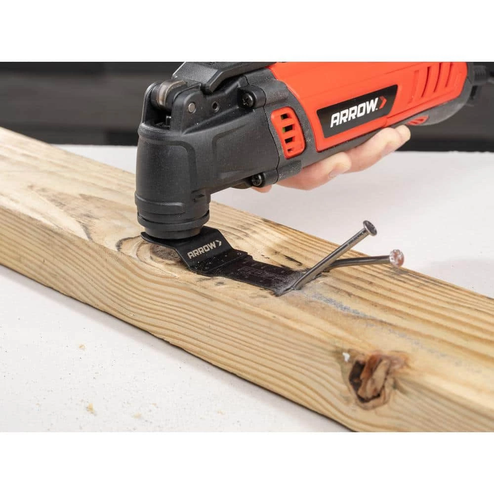 The Arrow Bi-Metal Oscillating Tool Blade features a 2-pack of 1-3/8 in. blades for convenient use to complete all your metal-cutting projects. The Arrow Titanium Coated Bi-Metal Oscillating Tool Blade are ideal for metal, wood with nails and more. These titanium-coated cutting blades have a universal-fit open-back connector for use on most major brands of oscillating tools. The Arrow Titanium Coated Bi-Metal Oscillating Tool Blade features solid and durable bi-metal blades with titanium-nitride coating along the tooth strip to increase blade life by reducing heat and increasing hardness. The wide 1-3/8 in. blade easily removes material quickly and effectively. in addition, the impactful packaging on the Arrow Titanium Coated Bi-Metal Oscillating Tool Blade makes it simple to match the application for your next project.