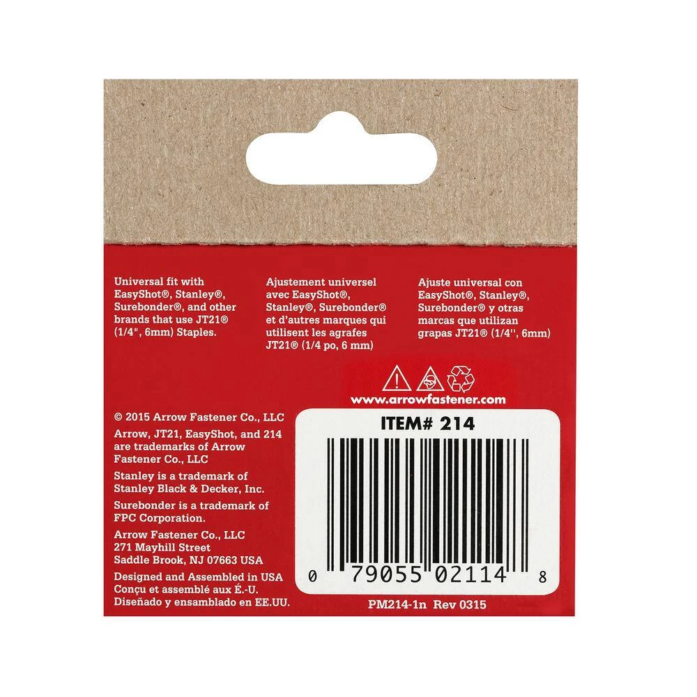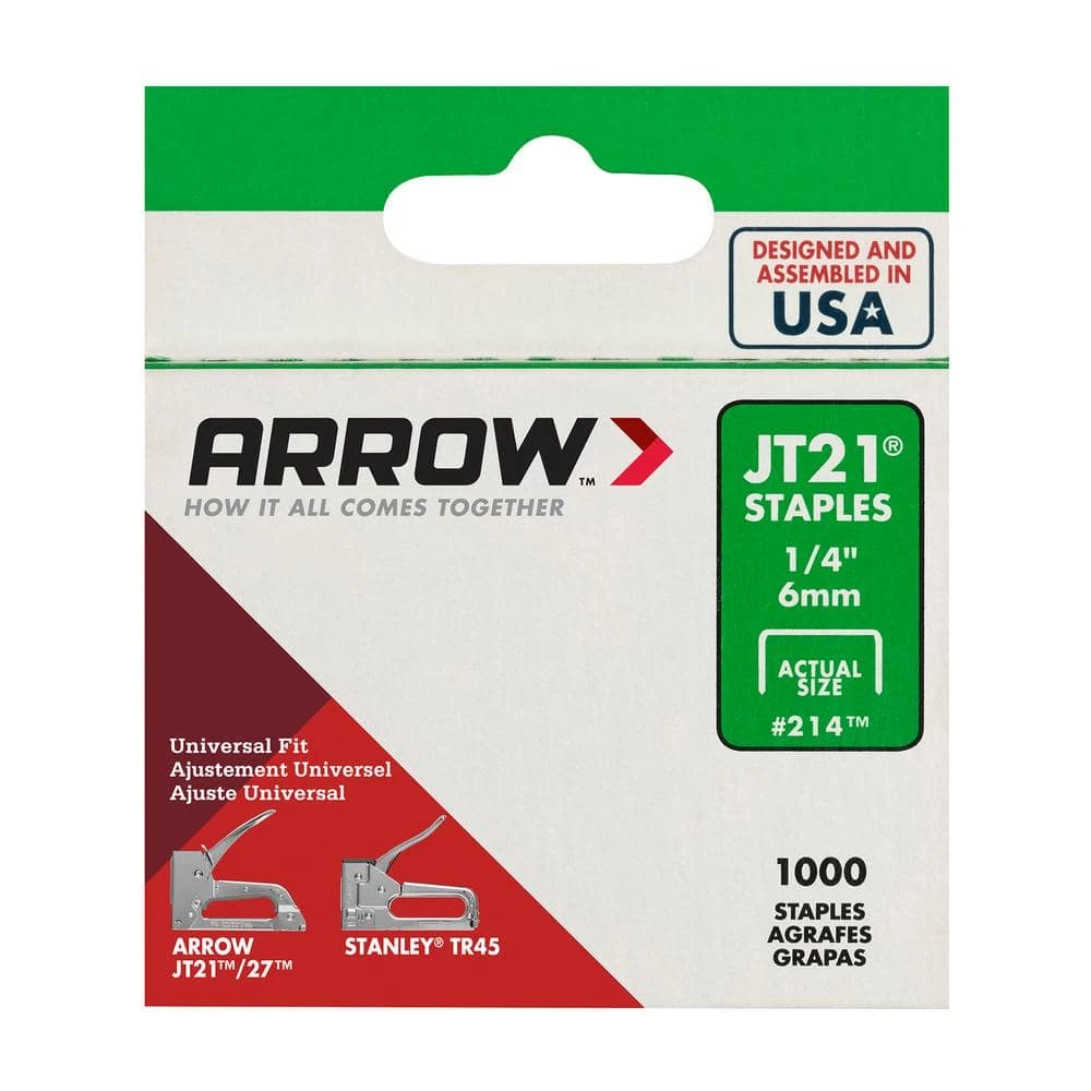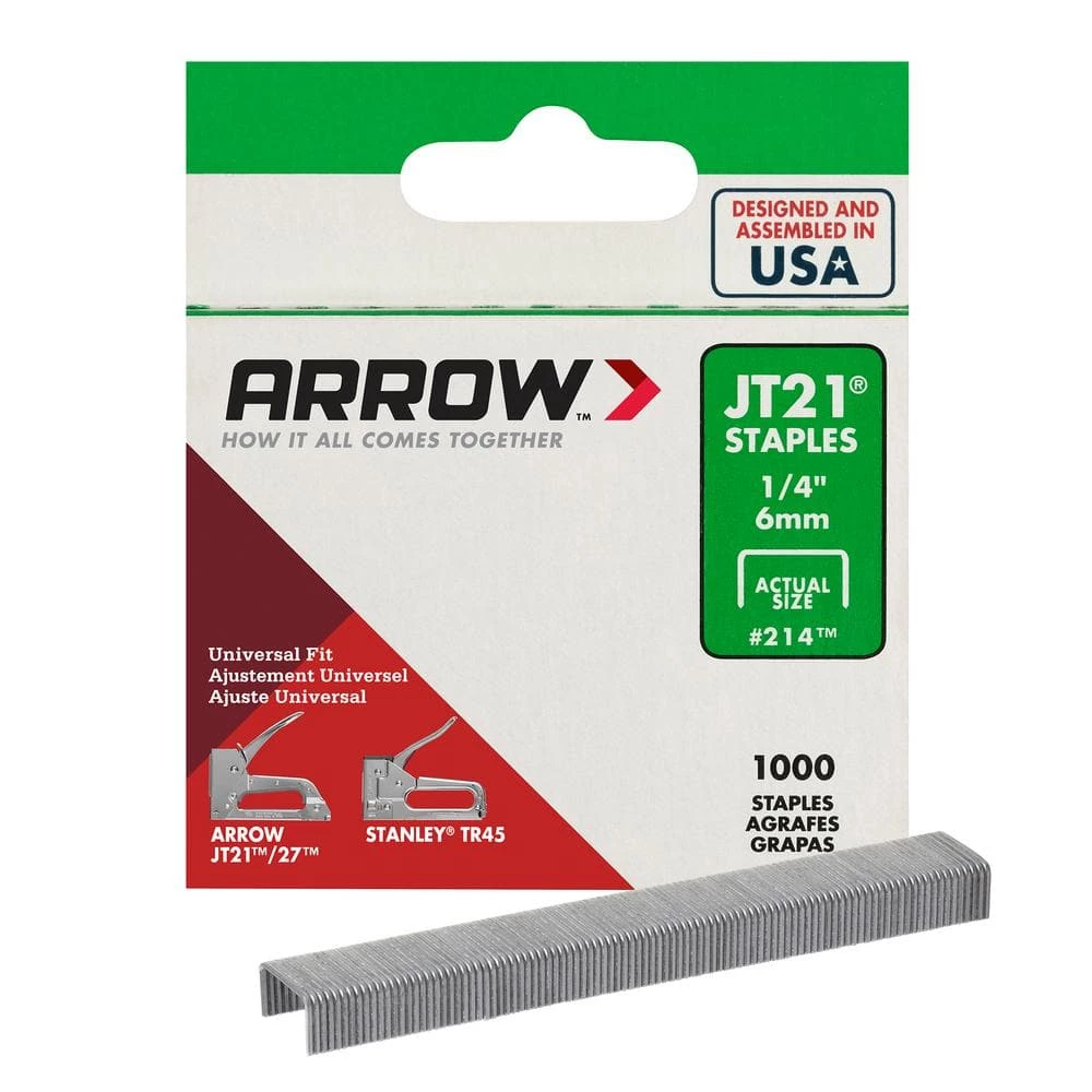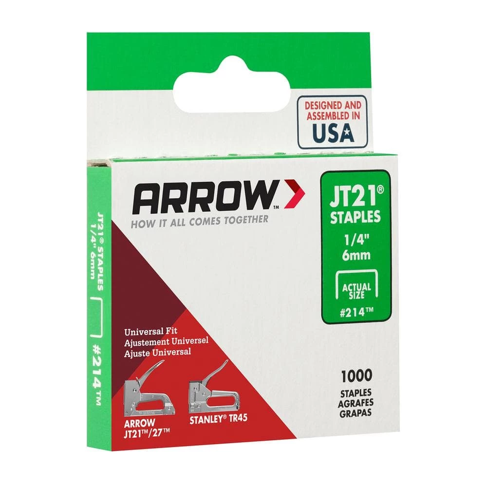 These Arrow Fastener 1/4 in. Leg x 7/16 in. Crown 21-Gauge Galvanized Steel Staples (1,000-Pack) are perfect for your small hobbies and craft projects that require light-duty tacking. These staples fit the JT21 and JT27 Gun tacker (not included). Let Arrow Fasteners help you complete your next craft project.