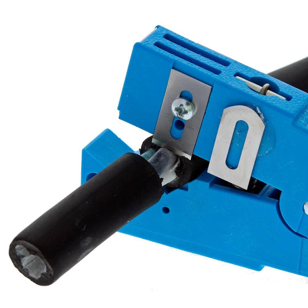 - Adjustable blade depth settings allow for a precise strip for multiple cable types and sizes