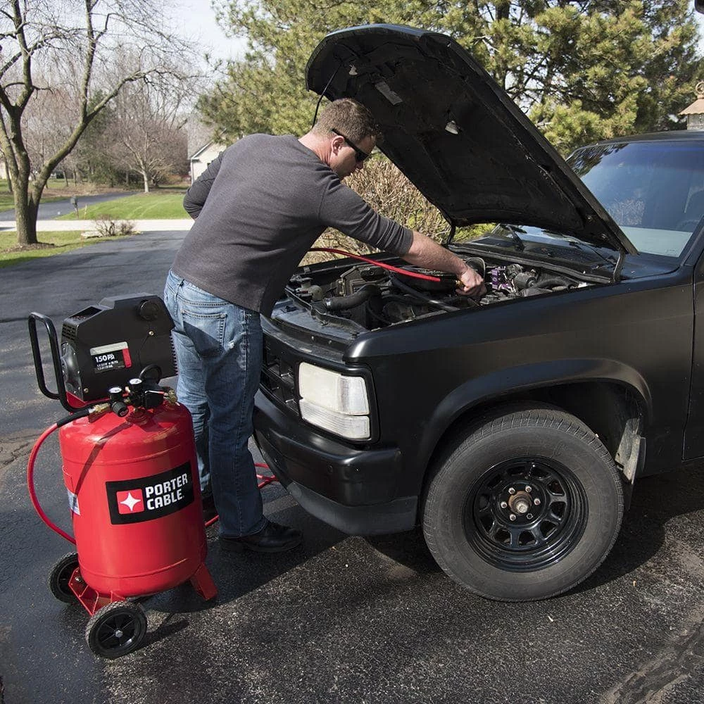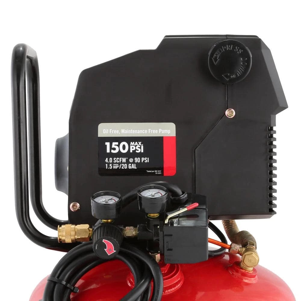 Porter Cable 20 Gal. compressor features an oil free, long life induction motor and pump with a fully enclosed shroud that covers working components. Compressor is low maintenance with no need for oil checks and changes. Unit has a low Voltage start up.