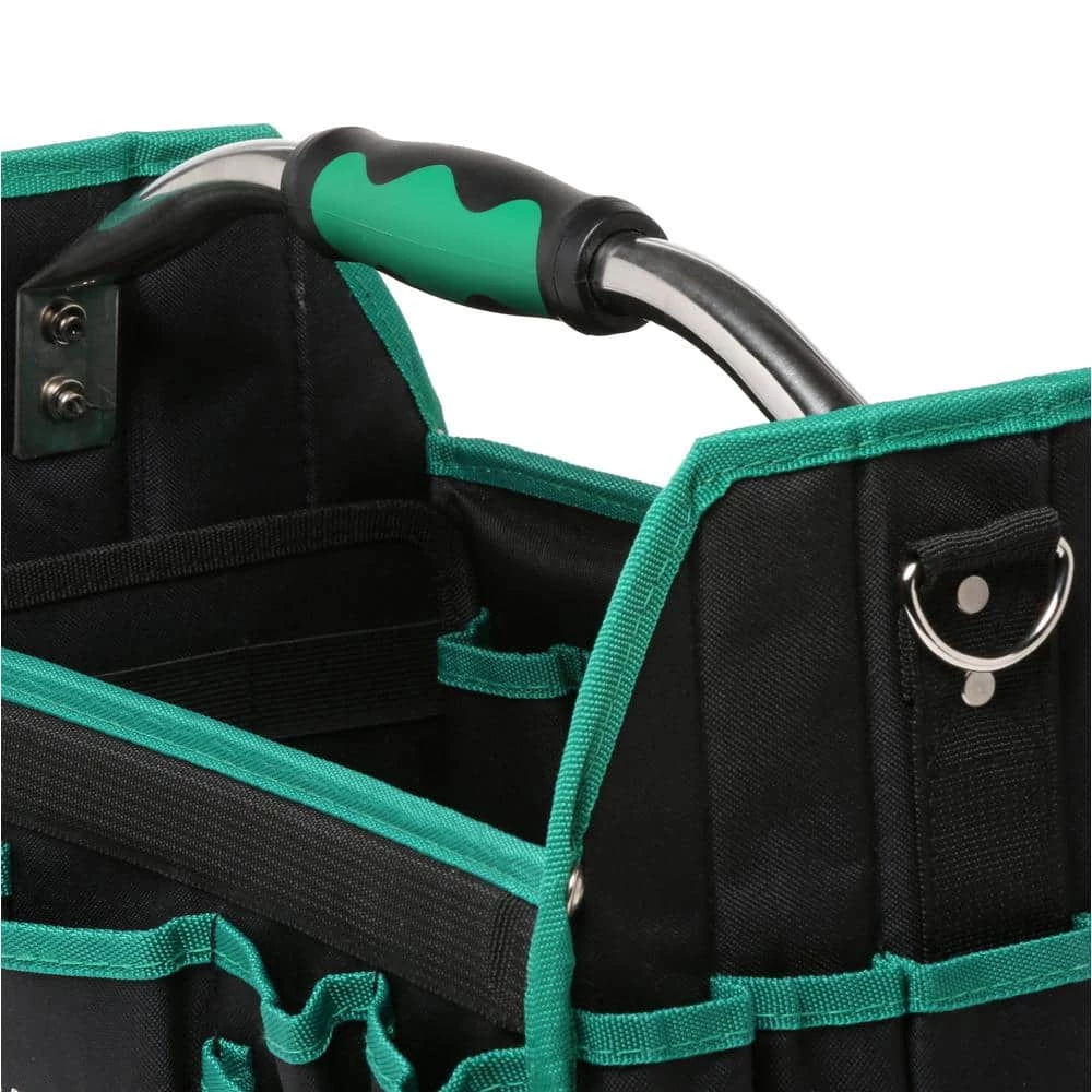 - Heavy-duty webbing keeps the tool bag’s pockets open for easy access to bag contents