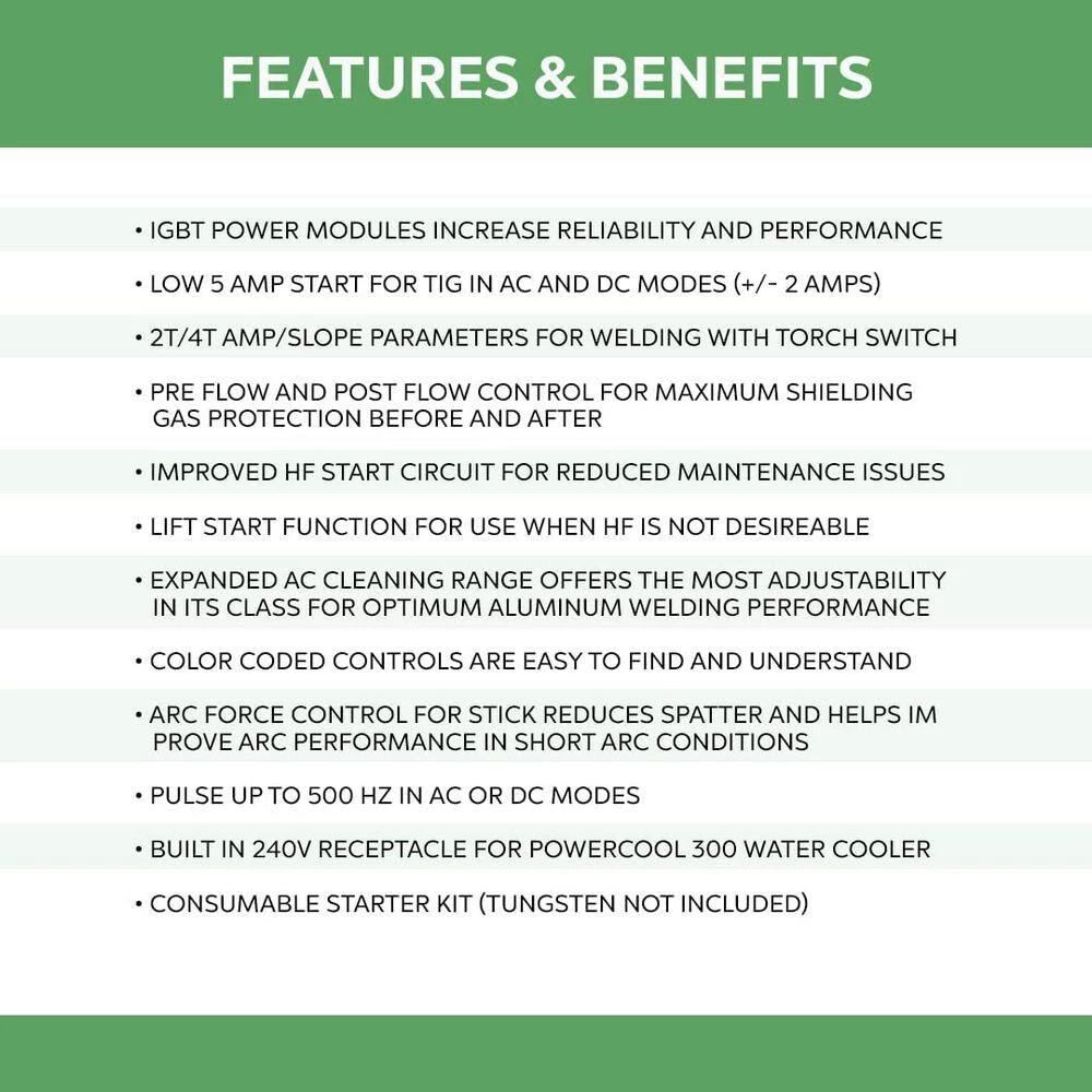 - Comes with 18-series TIG water-cooled torch. Need to purchase additional water cooler to use it properly.
