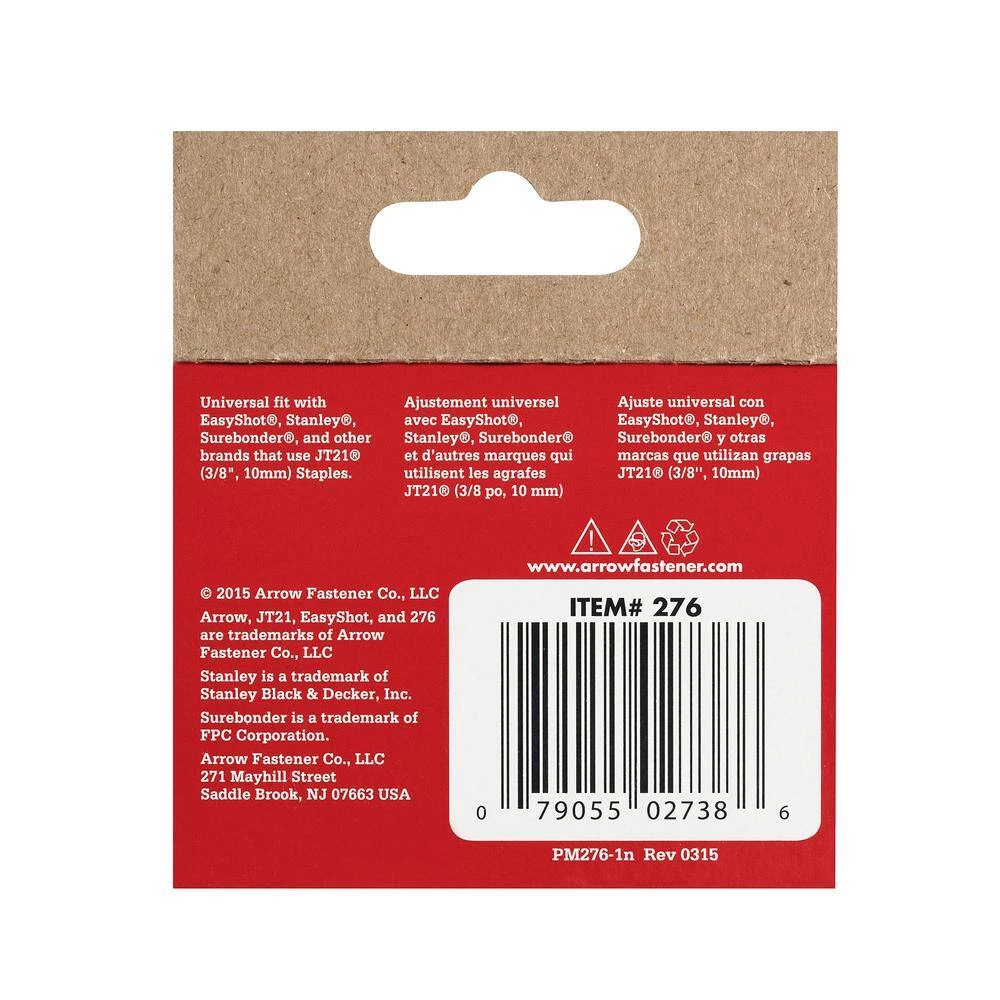 The Arrow Fastener 3/8 in. Leg x 7/16 in. Crown Galvanized Steel Staples (1,000-Pack) fit the JT21 and JT27 Staple Guns and are ideal for light-duty stapling jobs around your home and business. These staples may also be used for small hobbies and crafts.