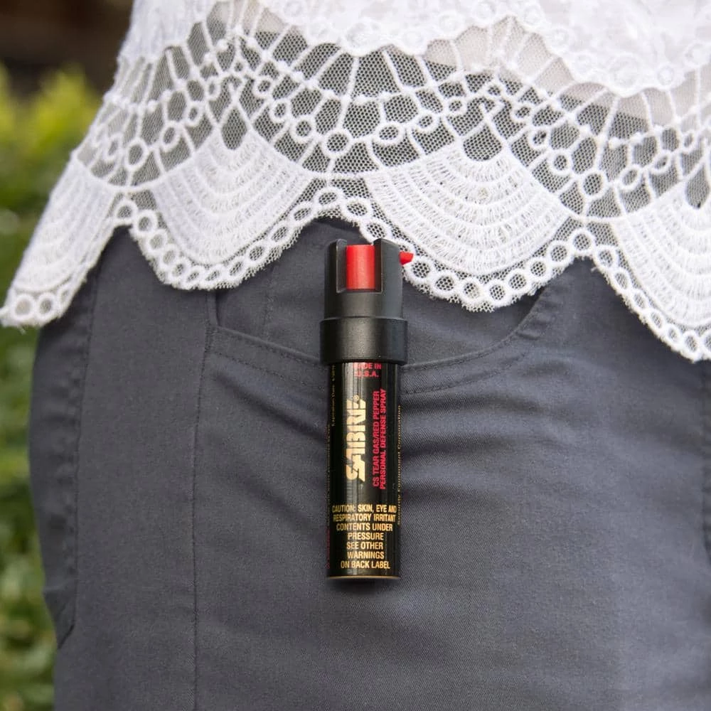 Stay safe while on the go. The SABRE Defense Spray with Attachment Clip provides maximum strength protection while being easy to carry and conceal. This advanced 3-in-1 spray is our most intense deterrent, containing SABRE’s maximum strength pepper spray, CS military tear gas to heighten the pepper spray burn, and UV marking dye to help the authorities identify a suspect after they’ve been sprayed. This spray contains 35 bursts (5x the competition) for protection against multiple threats; it also has a 10-foot (3-meter) range for protection at a safe distance. With an industry-exclusive HPLC laboratory, only SABRE guarantees its maximum strength formulation in every canister to help give you peace of mind, certainty, reliability, and safety when you need it most. For protection on the go, simply slide the clip onto a belt or clip it to the inside of a pocket or purse. SABRE Defense Spray is made in the USA.