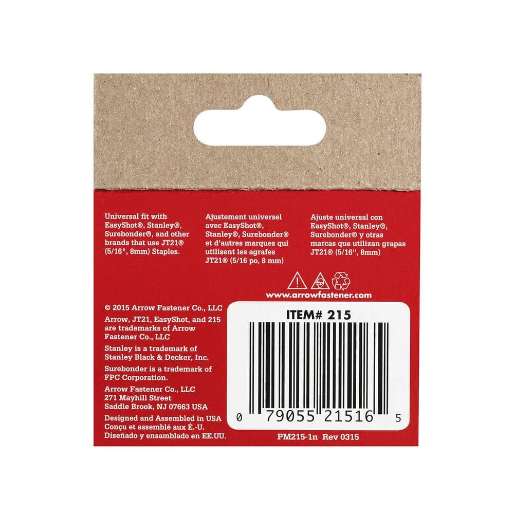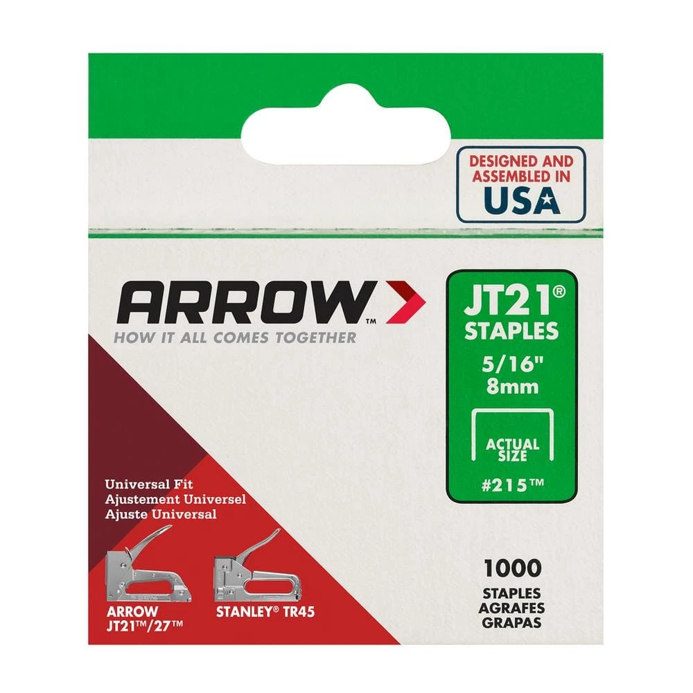 Make closet lining and kitchen shelf trimming easy with Arrow Fastener 5/16 in. Leg x 7/16 in. Crown Galvanized Steel Staples (1,000-Pack). These staples are compatible with the JT21 and JT27 Gun tacker (not included). These staples may also be used for small hobbies and crafts.