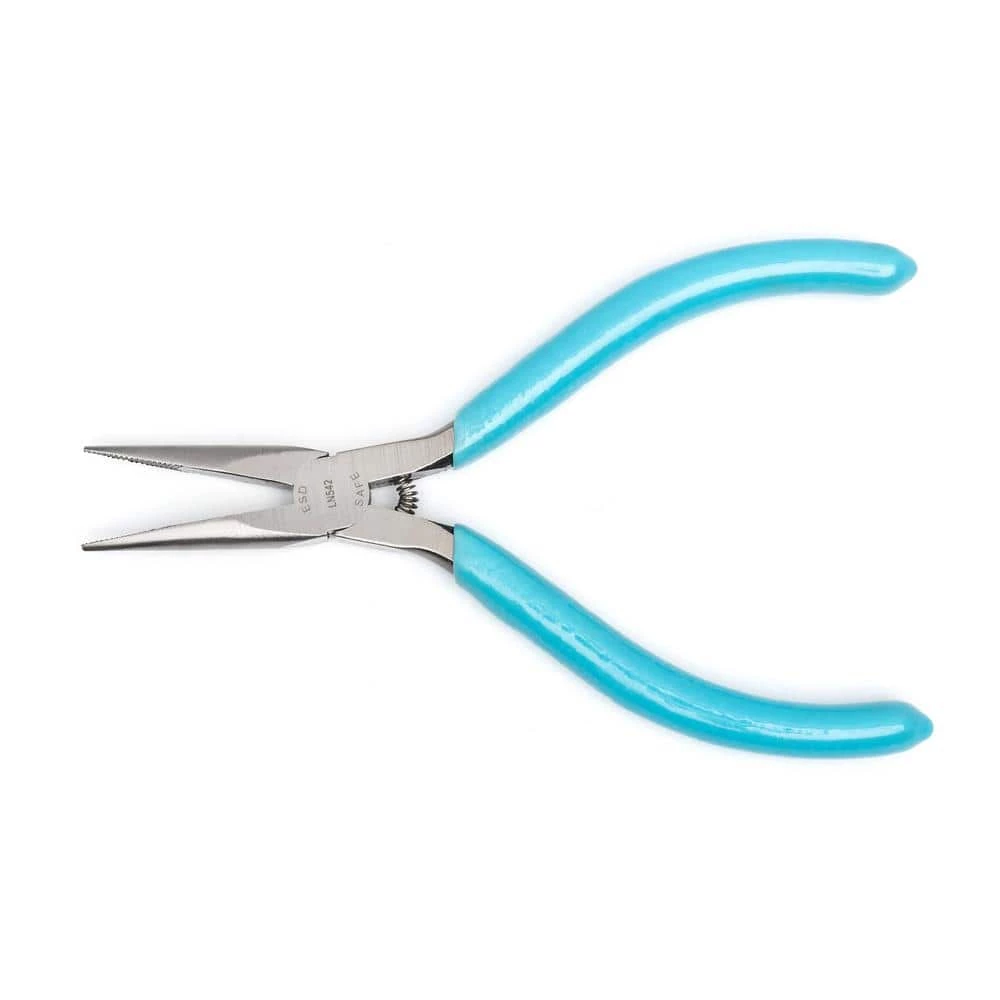 The Xcelite 5 in. T Long Nose Pliers feature green cushion grips to help prevent slips. The thin long nose design allows for greater access. The handle coil spring allows for faster cutting.