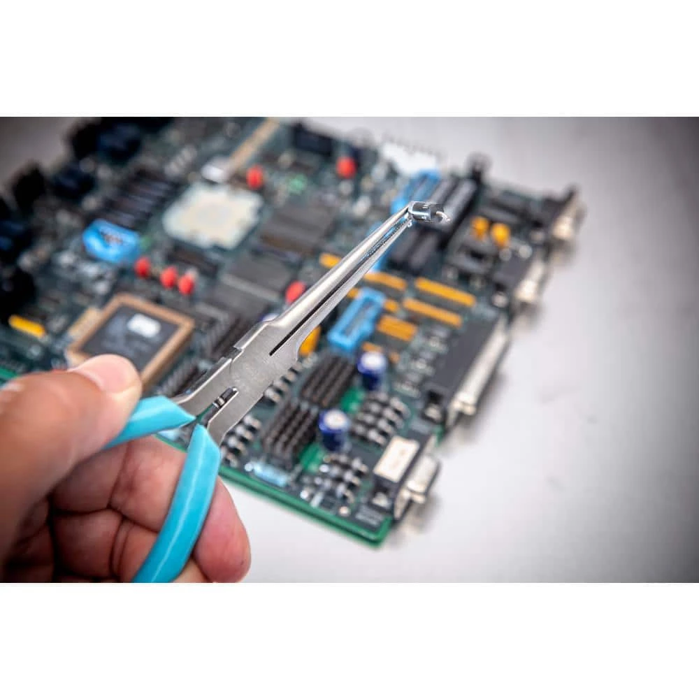The Xcelite 6 in. L Needle Nose Pliers feature green cushion grips to help prevent slips. The extra-long nose allows for greater access. The handle coil spring allows for faster use.