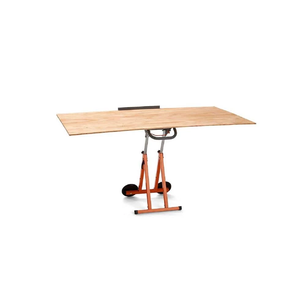 Moving sheet material and large pieces of wood is easier than ever with the PM-1850 Panel Carrier. This shop accessory does double duty not only does it reduce the time and effort it takes to move panels, but it also transforms into a table saw feed stand. The support leg kicks out and locks into place and the support arm tilts and locks horizontally, creating a stable feed stand. This means you can move material across your shop and run it through the table saw without it ever touching the ground. No shop is complete without 1 of these energy-saving, time-saving, back-saving panel carriers.