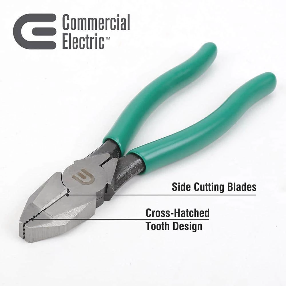 The Commercial Electric 7 in. Wire Cutting Pliers utilize notched jaw tips for added gripping power. It is designed with a solid joint design for smooth operation and heat-treated side cutting blades for added strength and durability. Perfect tool for the home, workshop or jobsite.