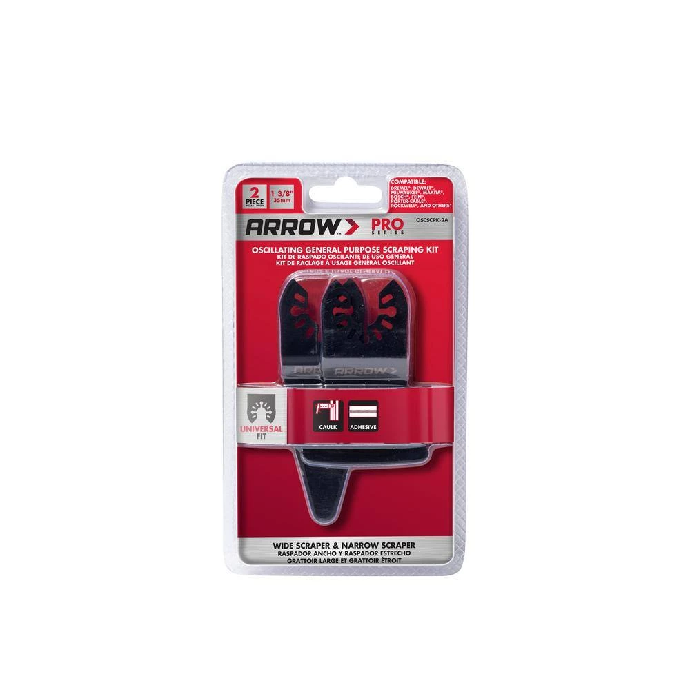 The Arrow General Purpose Scraping Kit delivers high-performance removal of soft and hard adhesives. This scraping kit is ideal for quick and efficient removal of paints, adhesives, sealants and more. The Arrow General Purpose Scraping Kit is made from strong and durable high-carbon steel and features a uniquely wide and narrow blade for those hard-to-reach areas. in addition, this kit includes 2 heavy-duty carbon steel blades for flexible and rigid scraping – the flexible design removes soft adhesives and the rigid design removes hard adhesives. Best of all, the Arrow General Purpose Scraping Kit features a universal-fit open-back connector that easily attaches to most oscillating multi-tools, so you can get the job done quickly and efficiently.