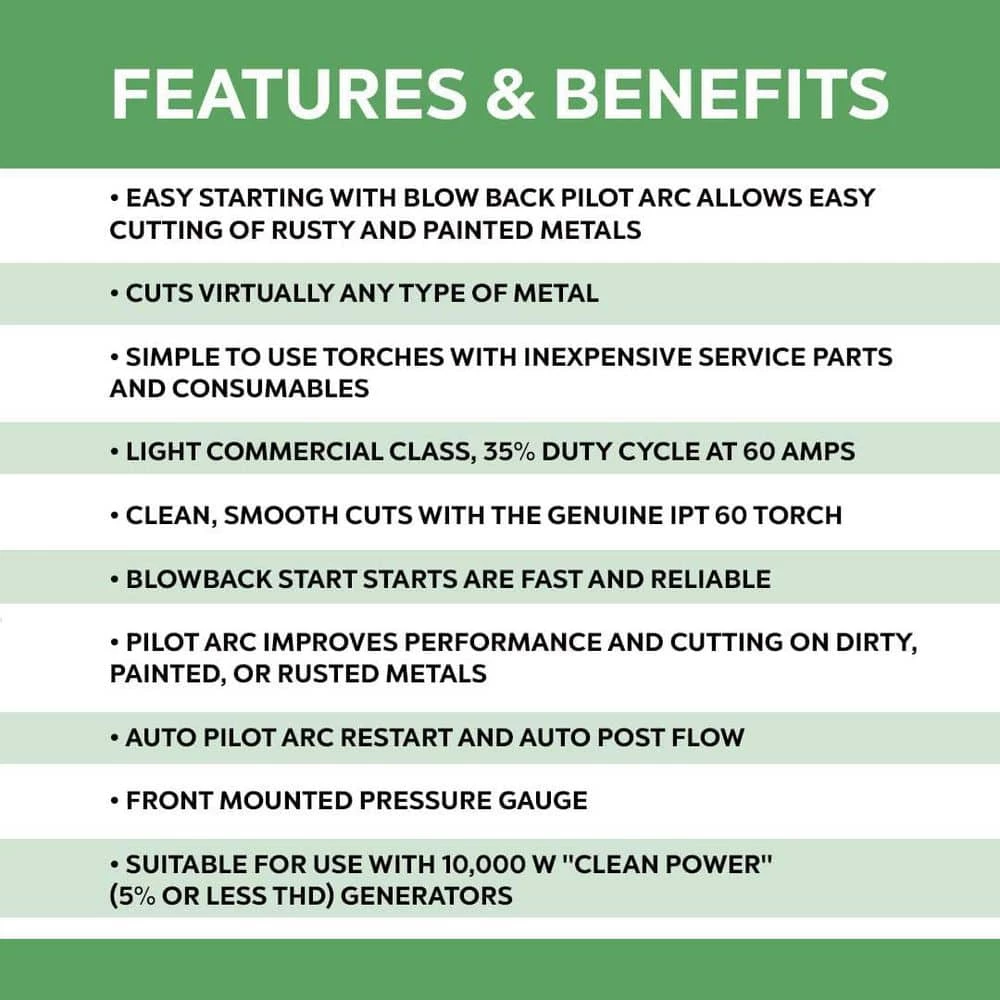 - Comes with iPT-60 hand-held plasma cutting torch