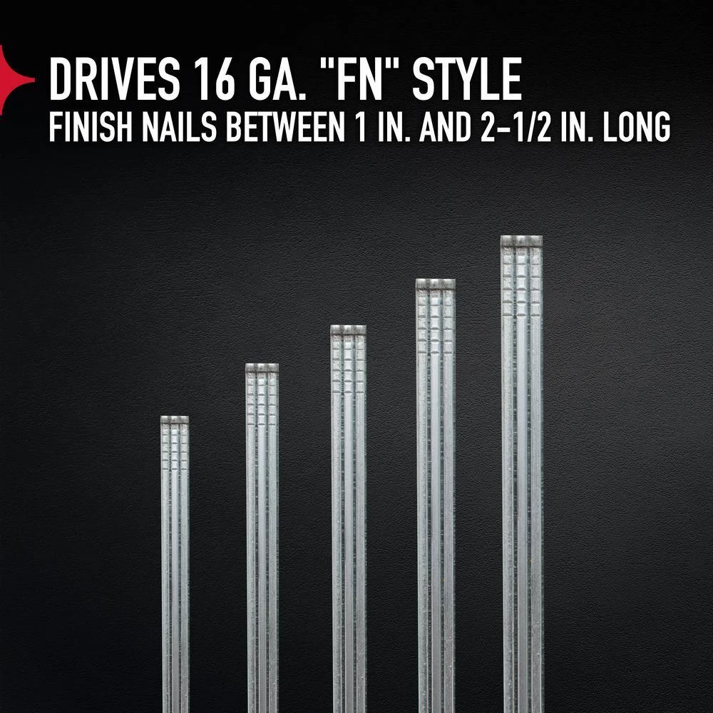 - FN250C – drives 16-Gauge FN style finish nails from 1 in. to 2-1/2 in. L