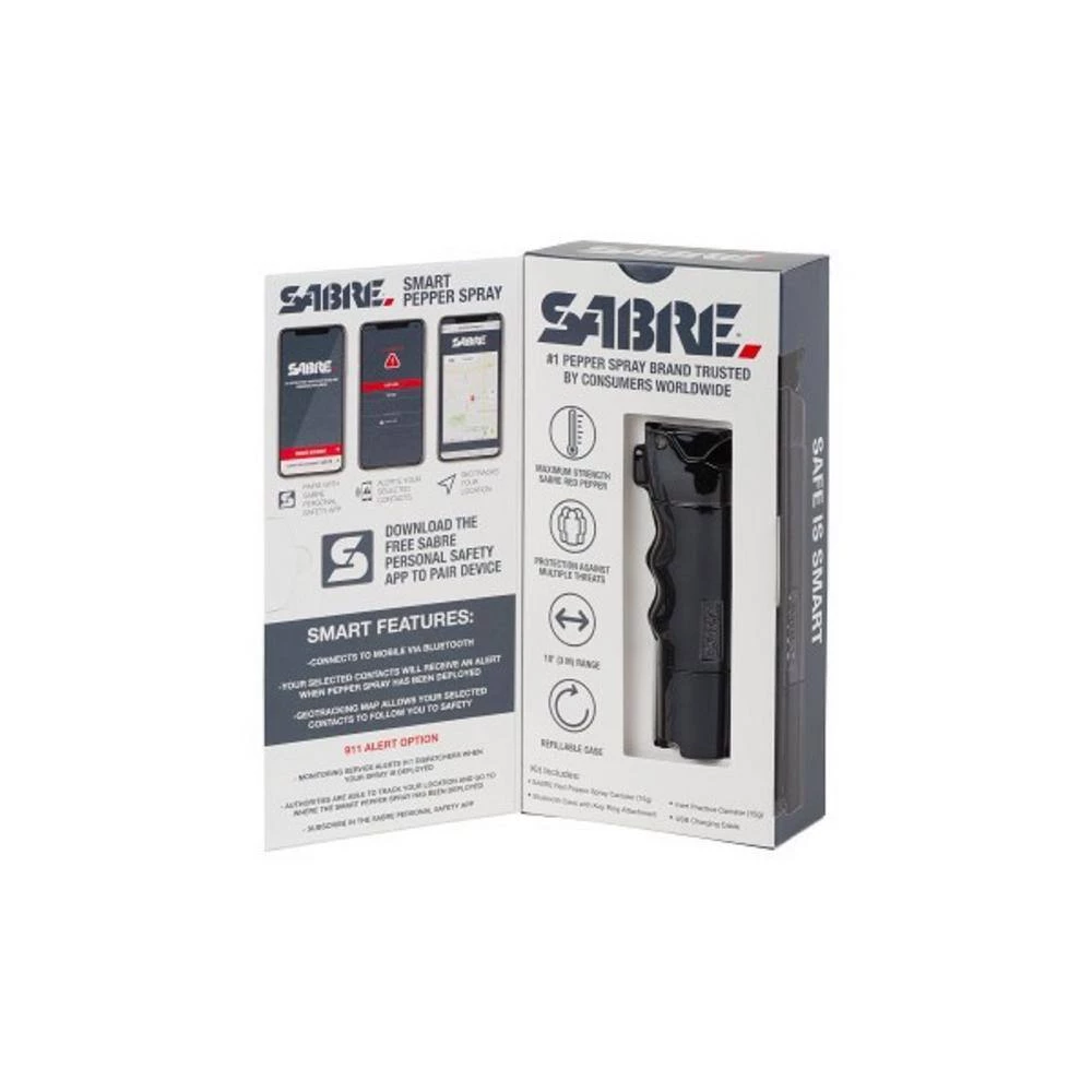 - Pairs with free SABRE personal safety app: pair via Bluetooth to alert your selected contacts when deployed and pinpoint your location with real-time geotracking, no monthly fee or subscription required (premium noonlight monitoring and subscription available); the app provides an extra layer of assurance with push notifications alerting you if your smart pepper spray is out of range (30 ft. (9 m) Bluetooth range)